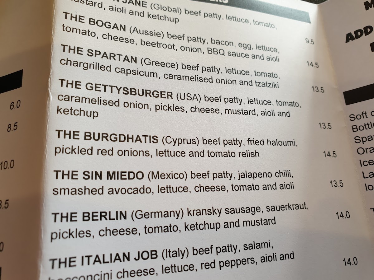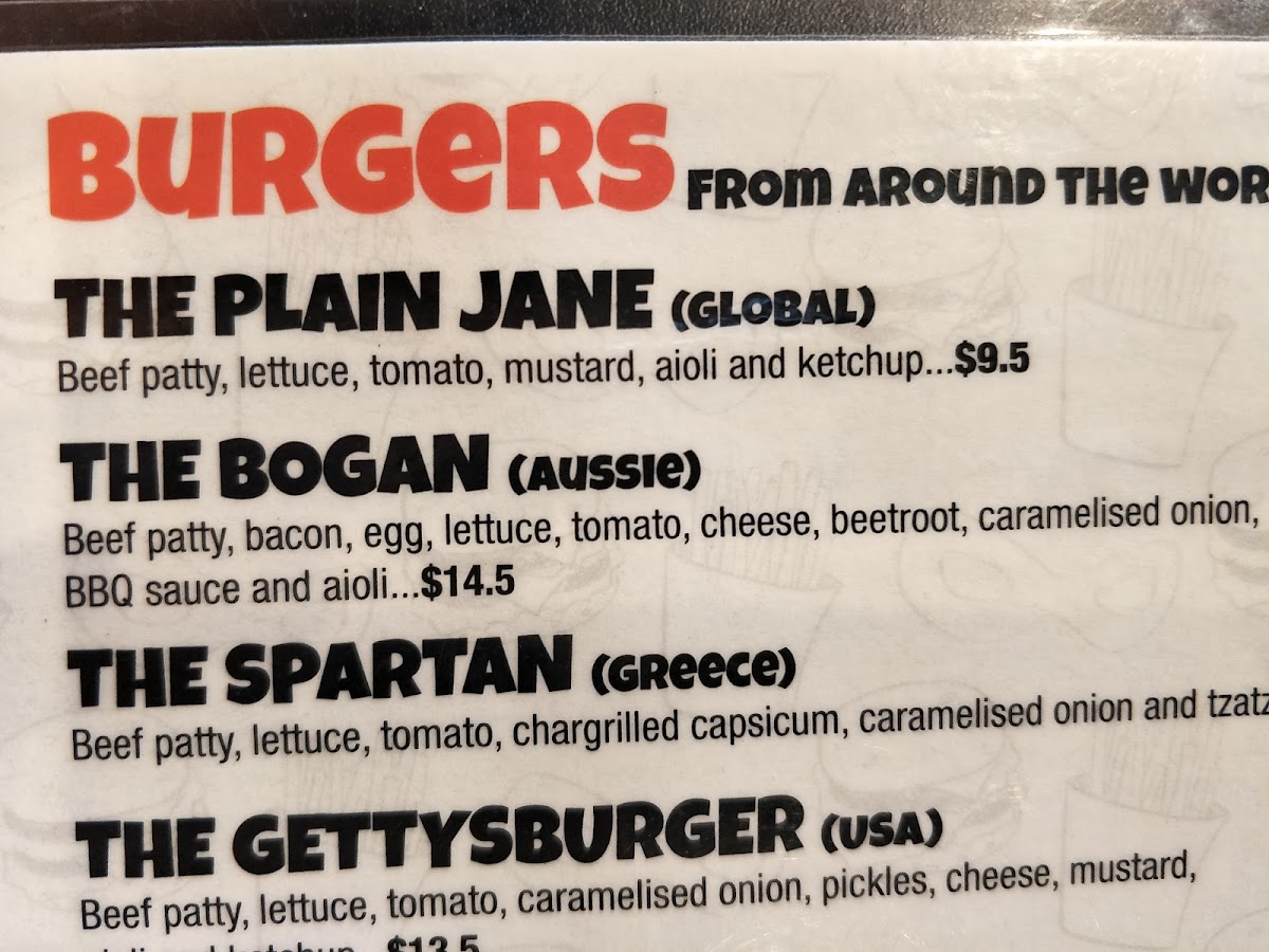 Beef Patty, Cheese, Caramelised Onion, Lettuce, Tomato, Pickels, Aioli, Tomato Sauce and Mustard.